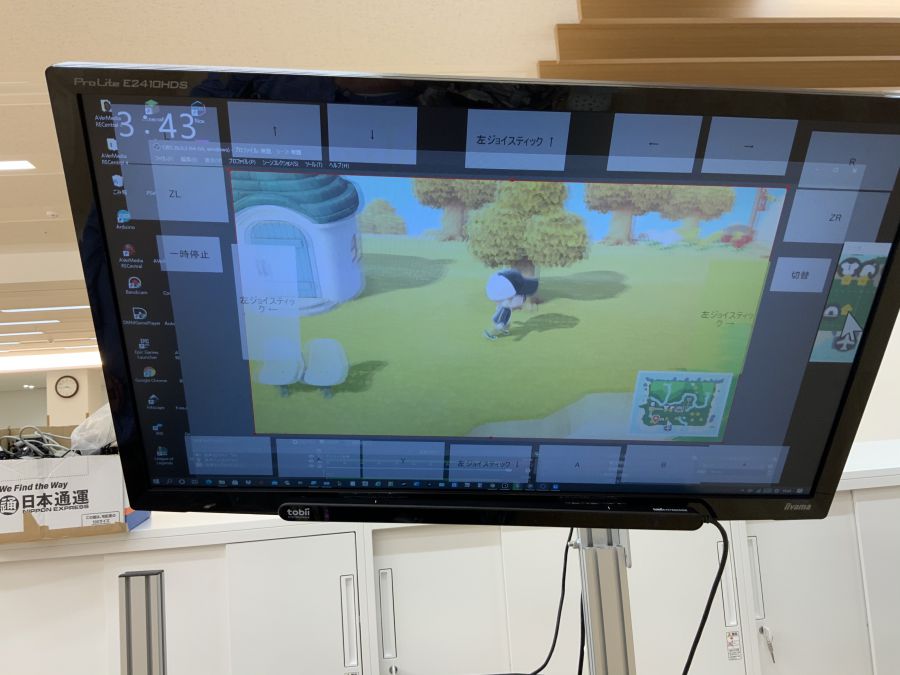 大人気のあつ森も、操作ができます。操作ボタンの数が多くて操作がしにくい場合は、Flex Controller拡張アプリを使えば、視線入力でゲームをプレイできます。