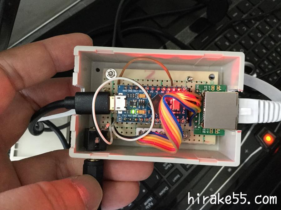 アームサポートを設置し、腕を支えて、5個のマイクロスイッチで、キー操作が可能な支援具を作成。 スイッチと、パソコンはArduino(マイコン)で接続されており、ボタンの押し分けで、入力されるボタンが変更される設定にしている。 また、押し分けの設定で、ナースコールにも分岐できるようになっている。 アームサポートは、自遊自在(日本化線株式会社)で作成。スイッチは、POP用クリップで固定した。 |